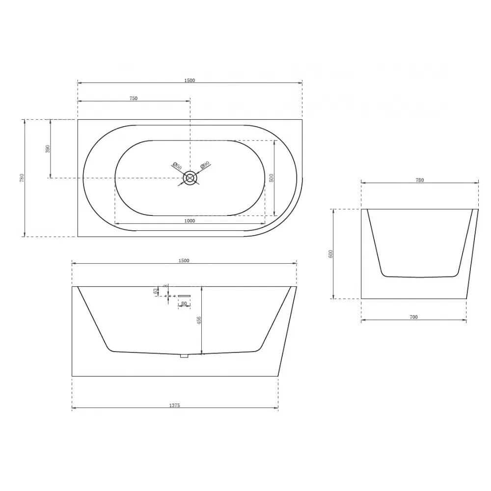 Акриловая ванна ABBER 150x80 AB9257-1.5 L левая