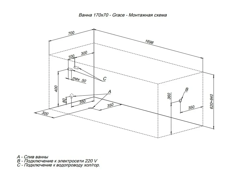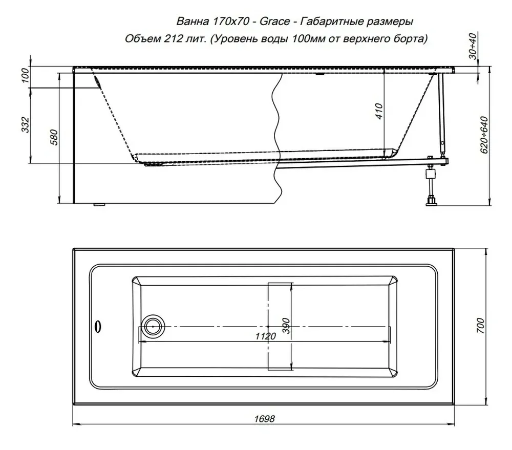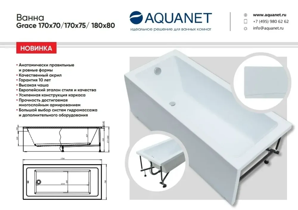 Акриловая ванна Aquanet Grace 00312653 170x70 с каркасом
