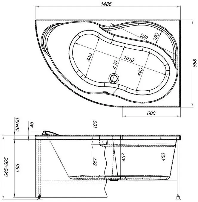 Акриловая ванна Aquanet Graciosa 150x90 00203941 правая