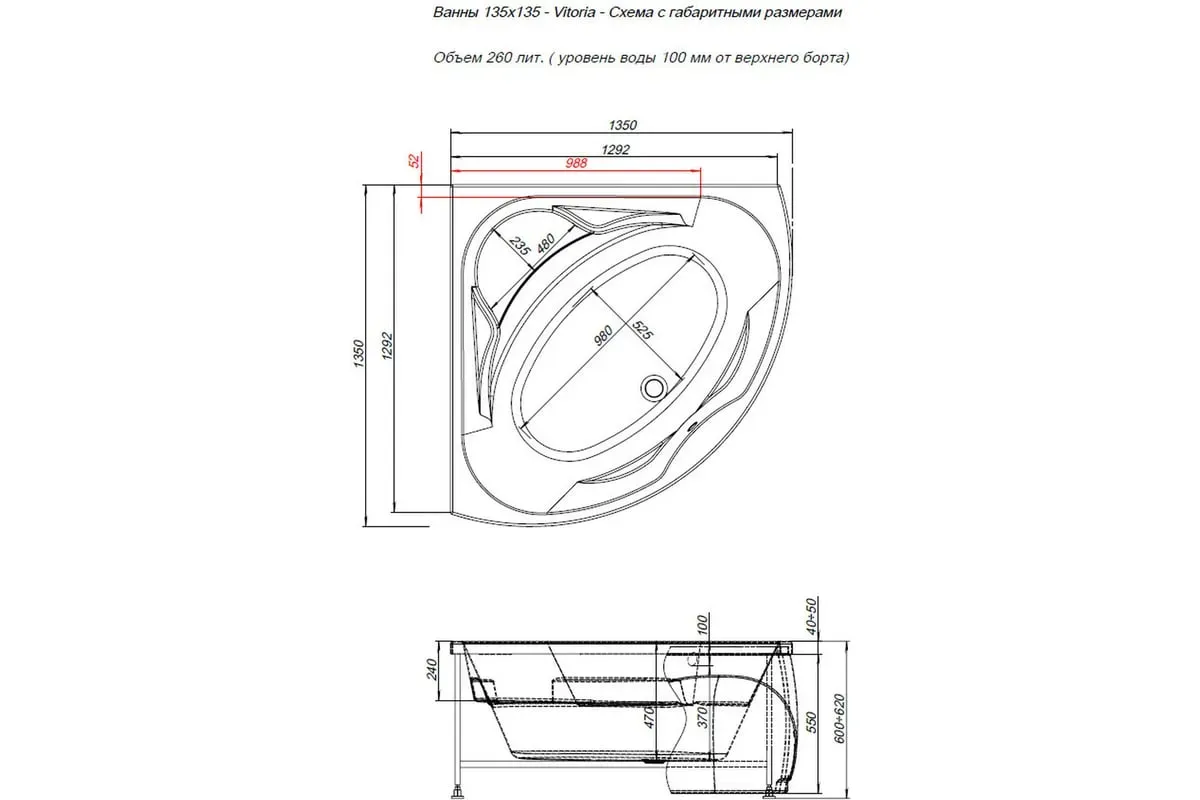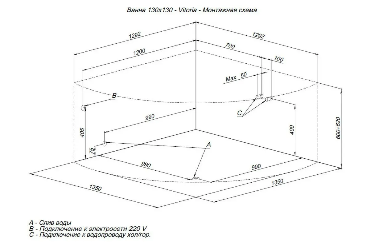Высота ванны на ножках, см | 62 |