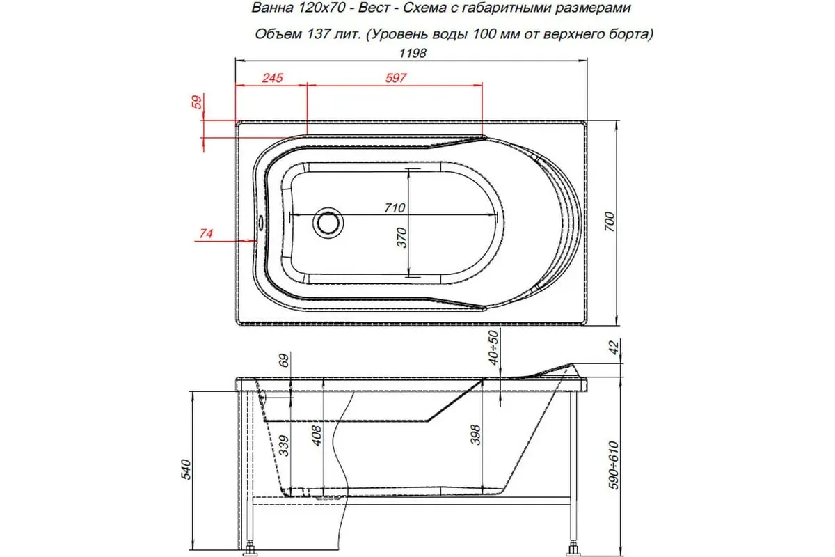 Акриловая ванна Aquanet West 00205558 120x70 с каркасом