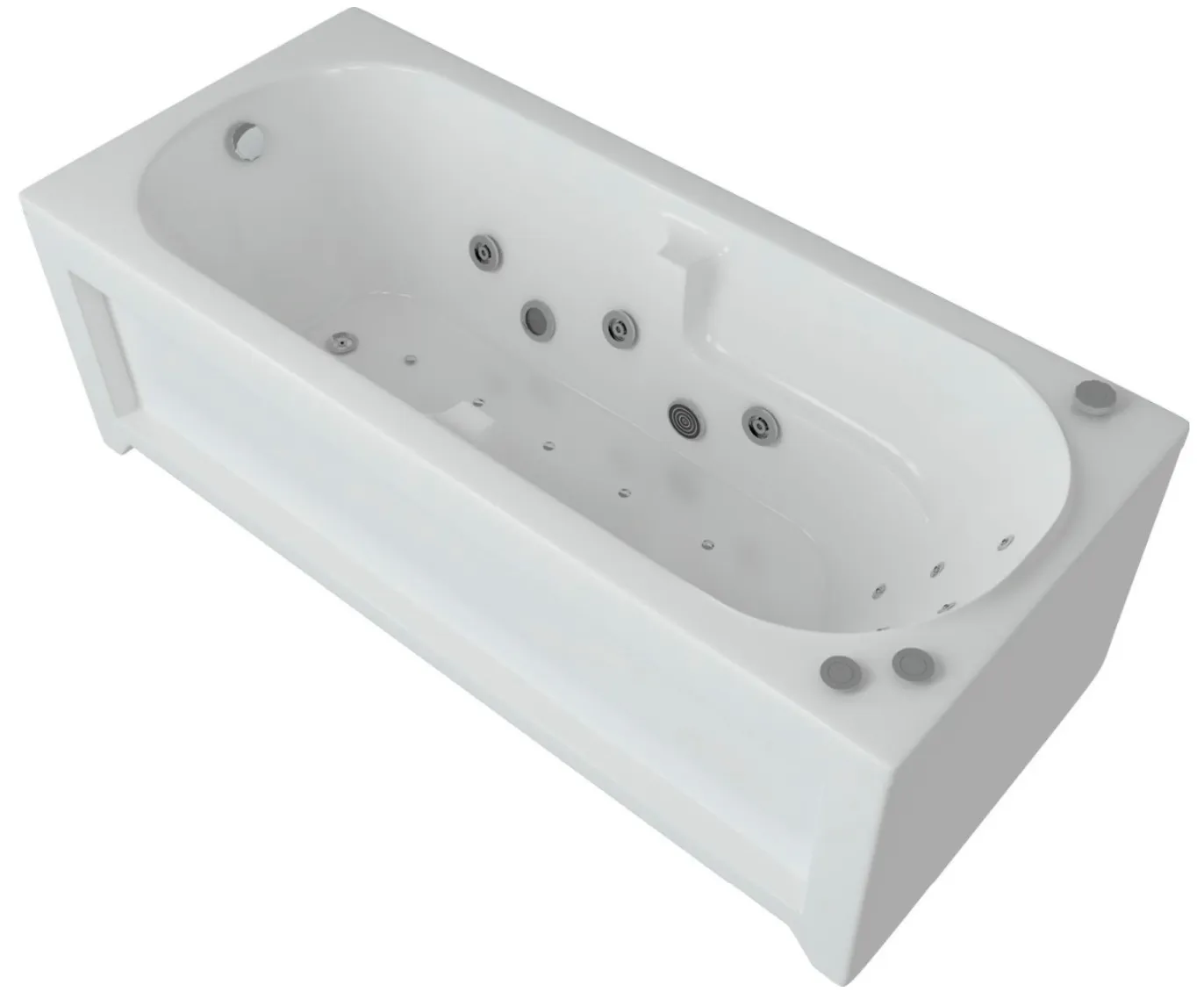 Купили такую ванну и не пожалели. Она удобная, под весом человека не "играет", сидеть и лежать в ней удобно. Никакого неприятно запаха не было. Высоту ножек можно отрегулировать, есть съемная фронтальная панель. Угол наклона спинки правильный, поэтому лежать или сидеть удобно. Ванна не скользкая, поэтому безопасная в первую очередь для детей.