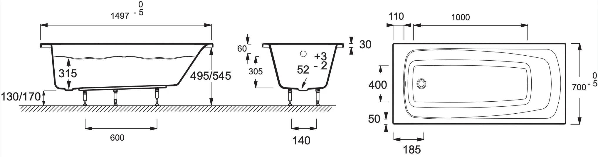 Акриловая ванна Jacob Delafon Patio 150x70 E6810RU-01