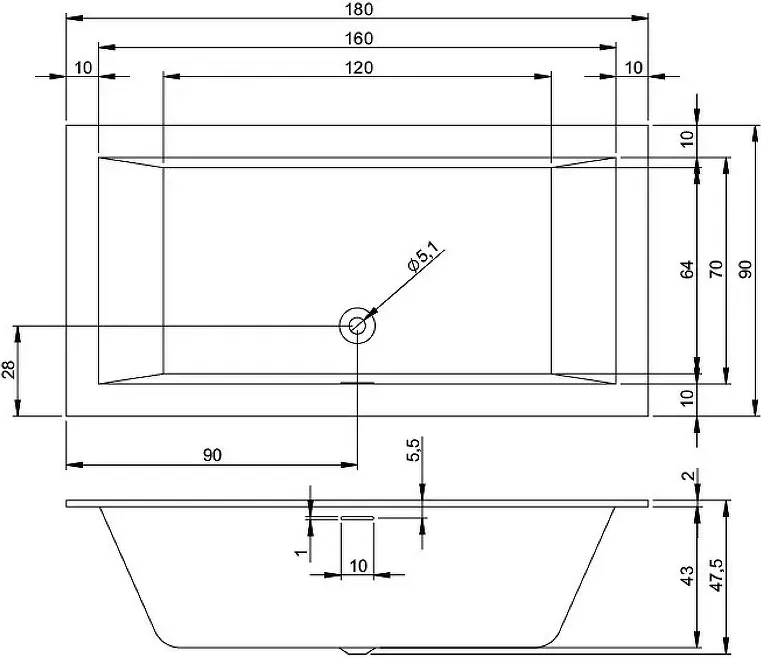 Акриловая ванна Riho Rething Cubic B107001005 180x90