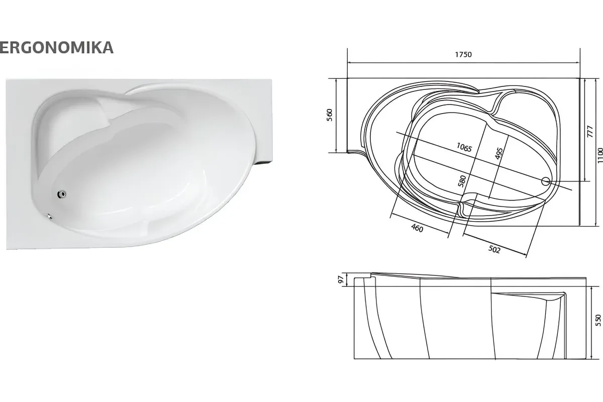 Ванна акриловая Marka One Ergonomika 180x115 01эрг17511п асимметричная угловая правая
