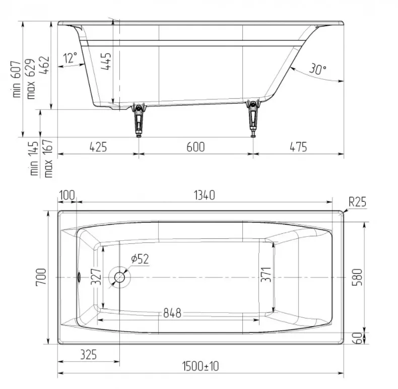 | Высота ванны на ножках, см | 62.9 |