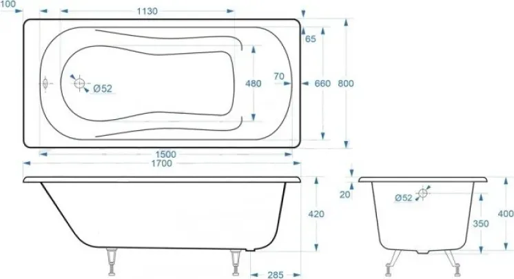 Чугунная ванна Vinsent Veron Haiti VHT1708042-AS с антискользящим покрытием