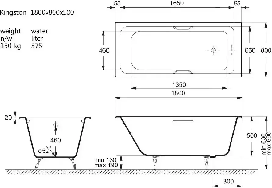 «маленьким бассейном» в ванной комнате. Большие габариты в сочетании с глубокой чашей делают ее лидером по объему наполняемости водой, а классическая форма ванны обеспечит высокую функциональность и удобство в эксплуатации.