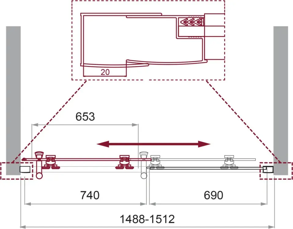 Душевая дверь BelBagno Uno-195 150x195 UNO-195-BF-1-150-P-Cr