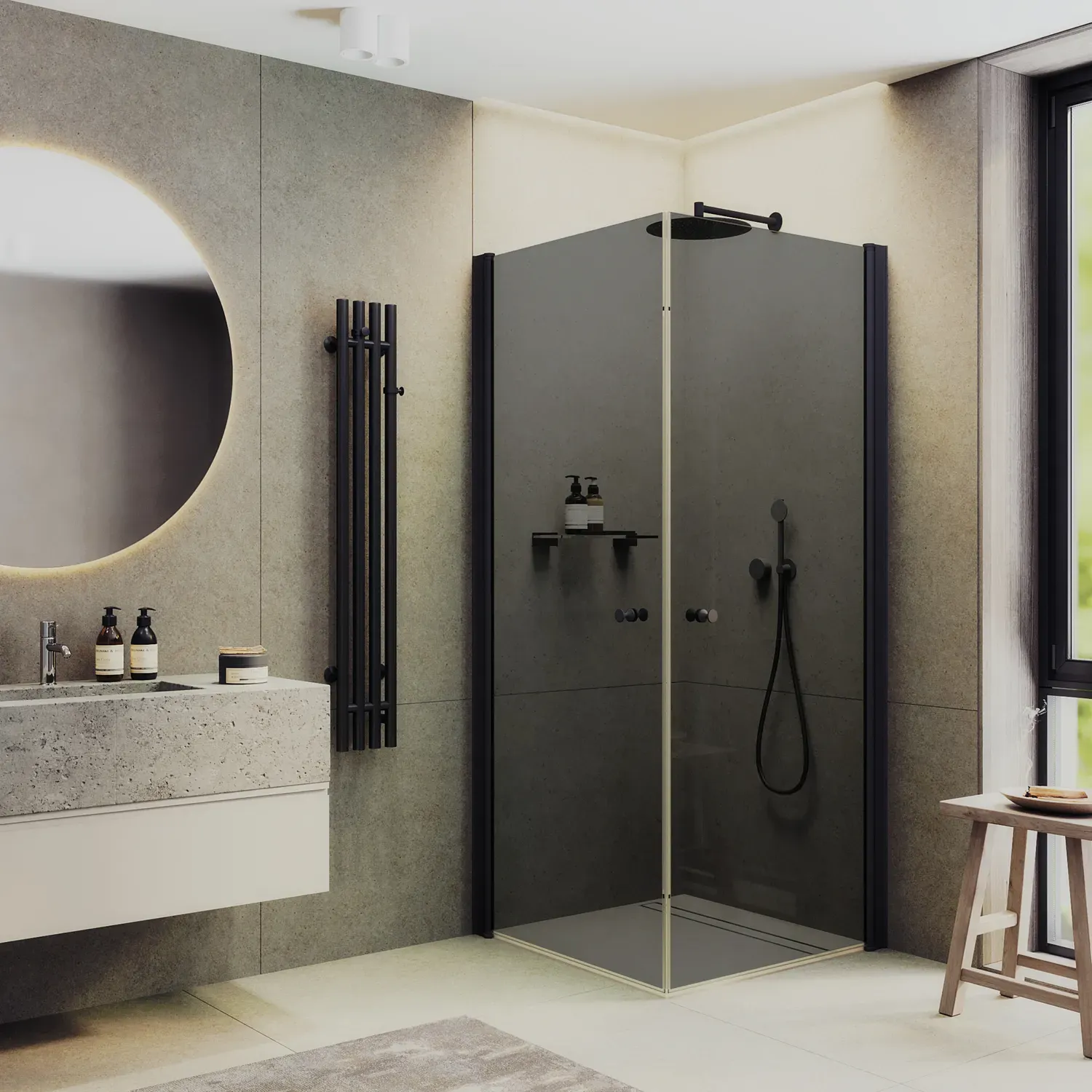 Душевой уголок MaybahGlass 90x90 MGY-1300-6 профиль черный стекло графит