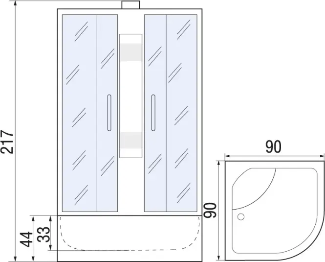 | Оснащение | Душевая кабина / сиденье |