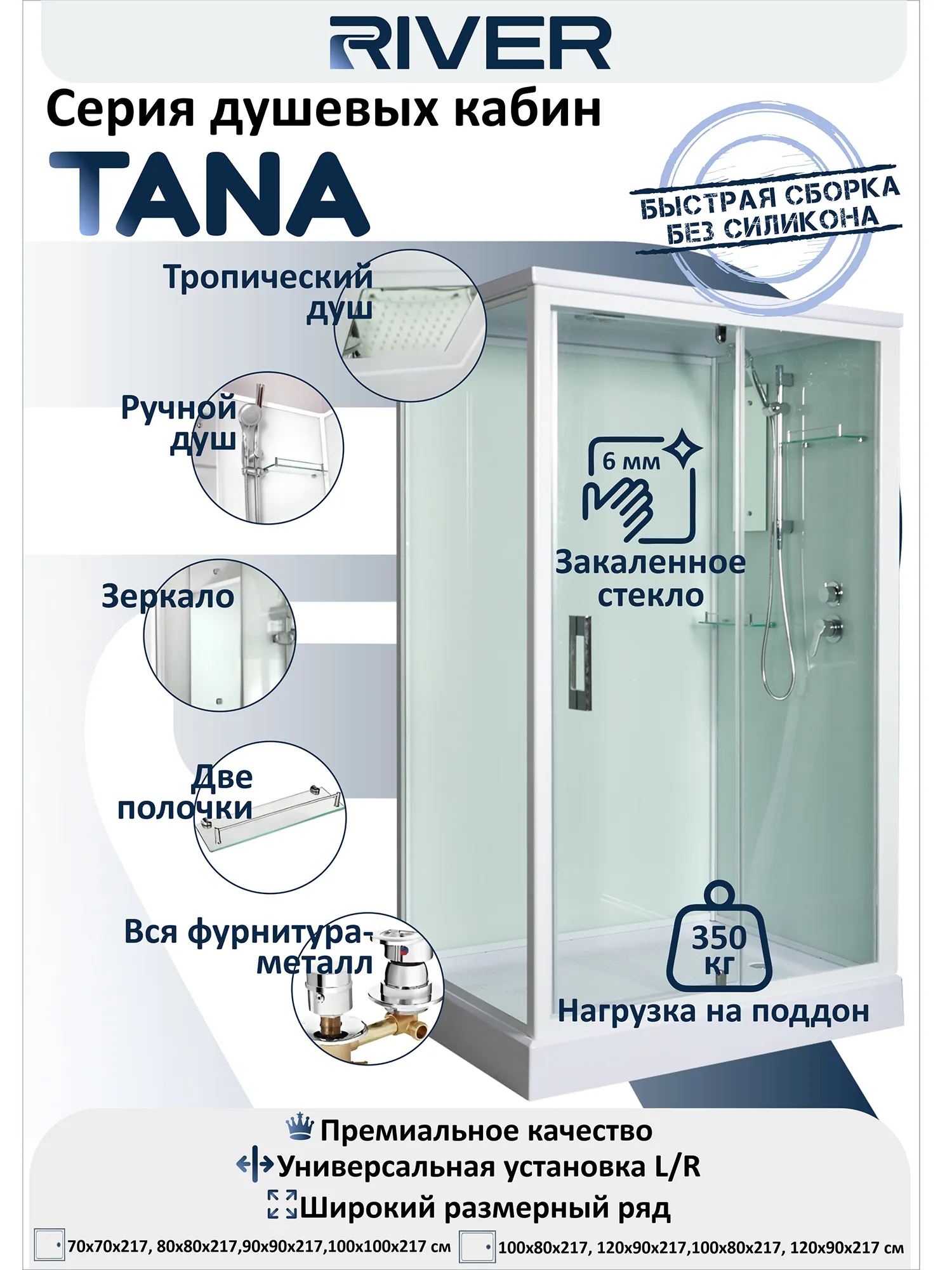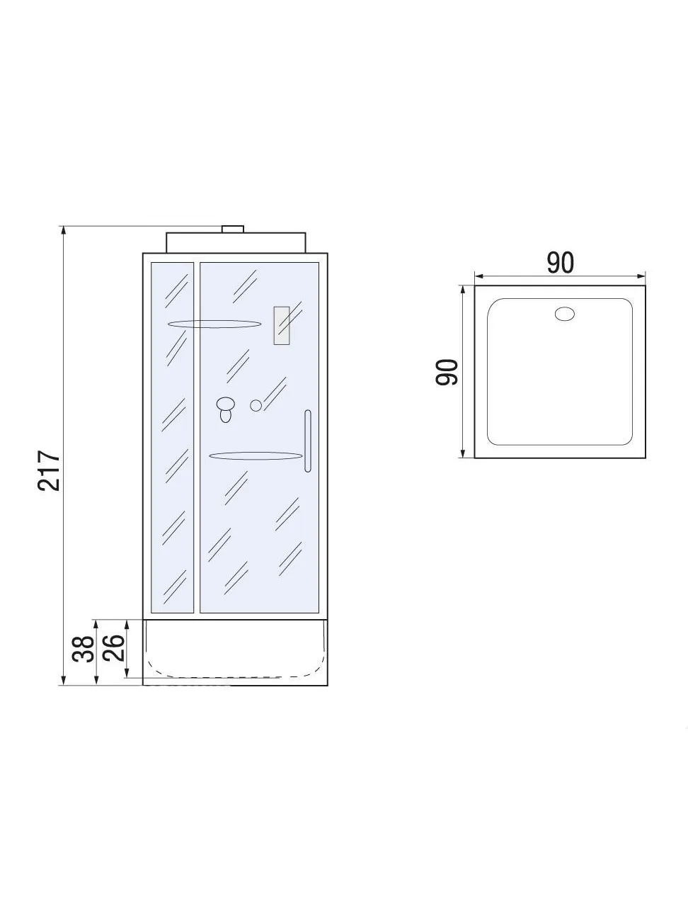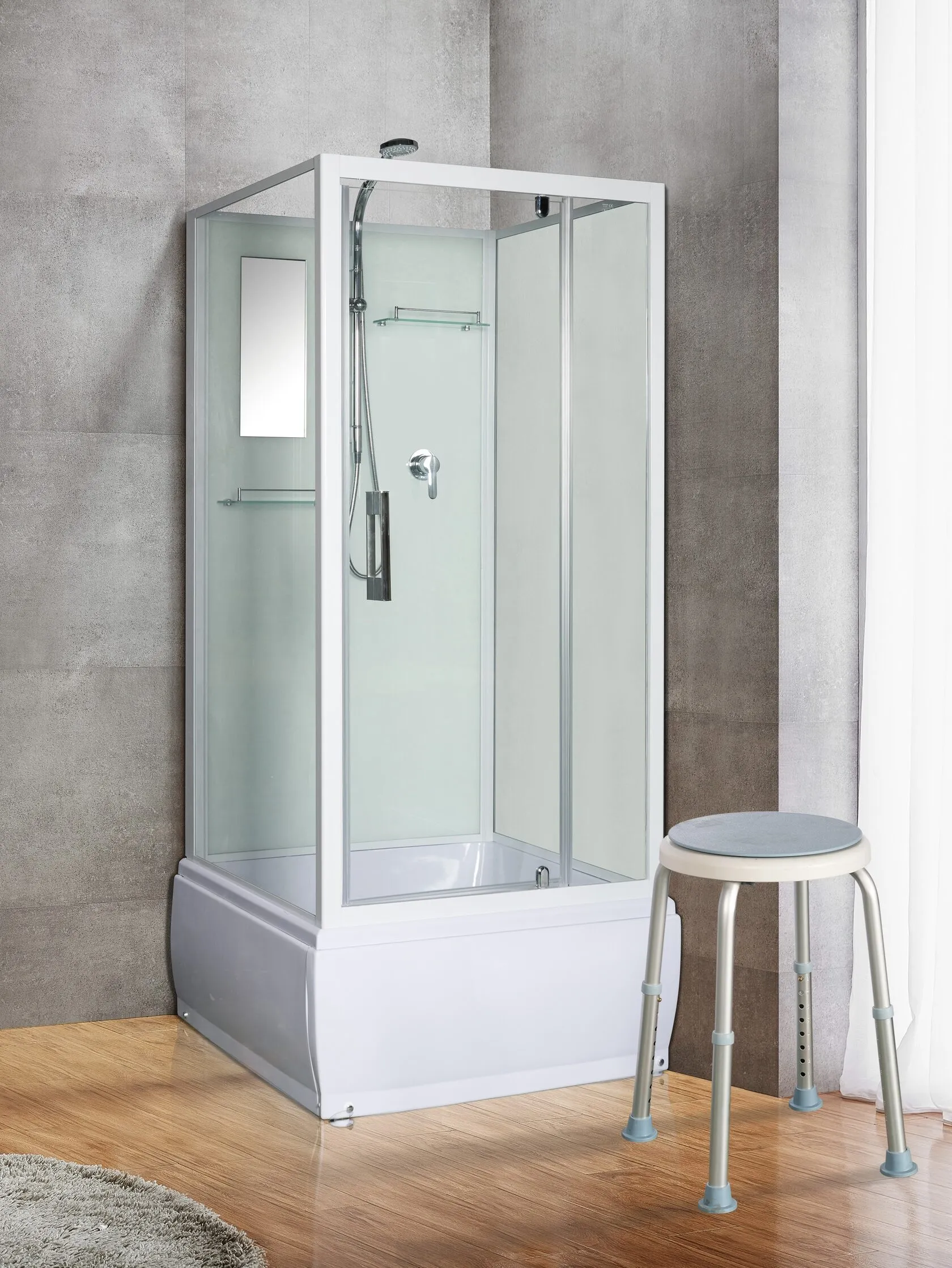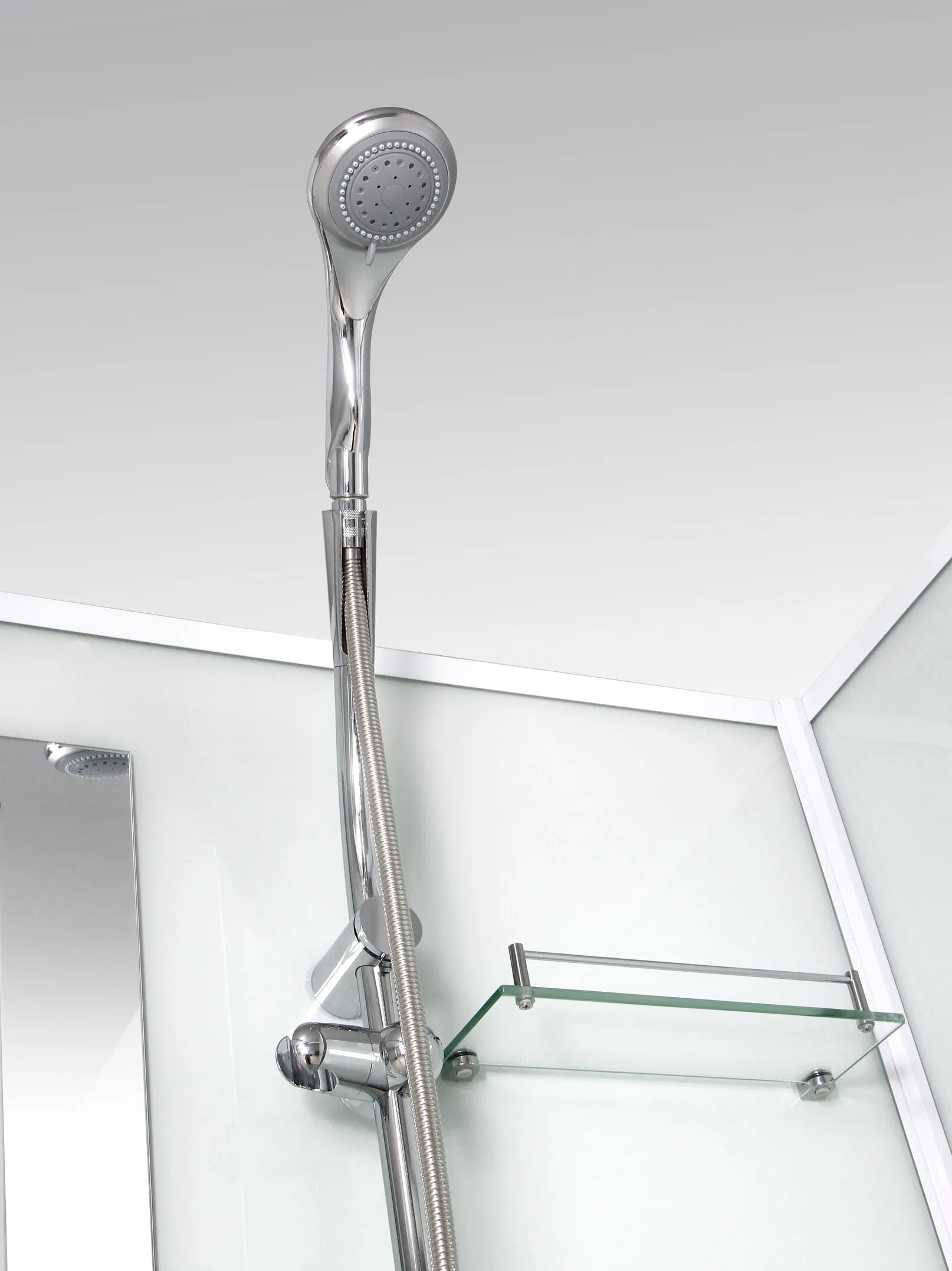 | Оснащение | Душевая кабина / верхний душ / душевая штанга / душевая лейка / душевой шланг / зеркало / смеситель / полочка / сифон |