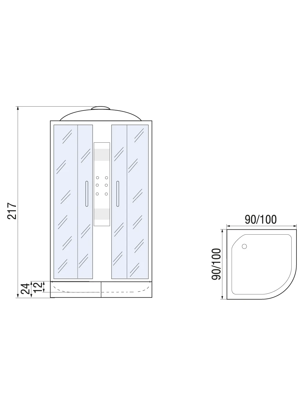 | Оснащение | Душевая кабина / полочка / зеркало / крыша |