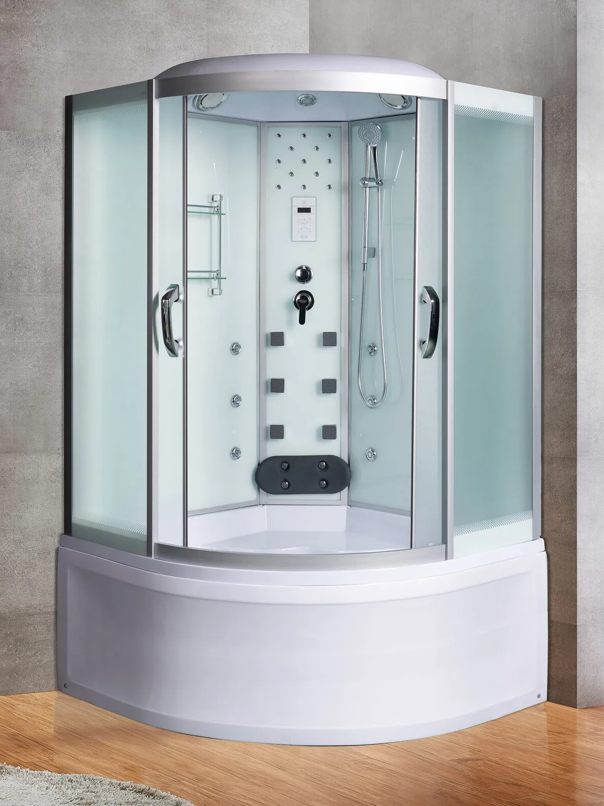 Оснащение | Душевая кабина / крыша / верхний душ / динамик / вентиляция / пульт / радио / смеситель / душевая штанга / душевая лейка / душевой шланг / полочка / сиденье |