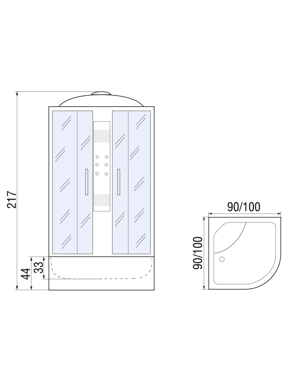 | Оснащение | Душевая кабина / полочка / зеркало / крыша |