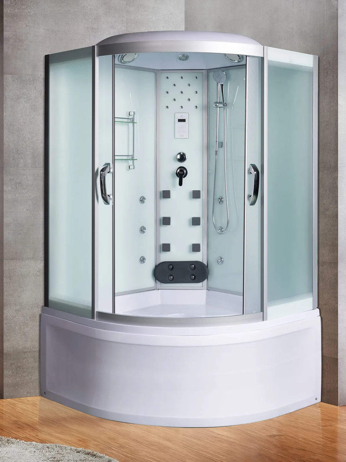Оснащение | Душевая кабина / крыша / верхний душ / динамик / вентиляция / пульт / радио / смеситель / душевая штанга / душевая лейка / душевой шланг / полочка / сиденье |