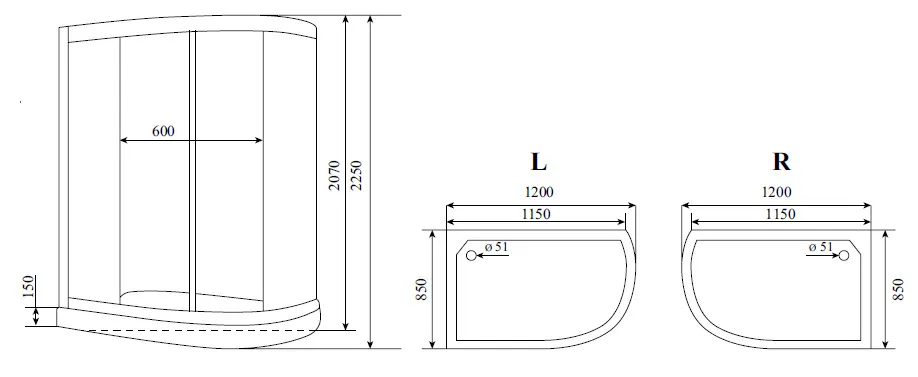 | Форма | Прямоугольная-асимметричная |