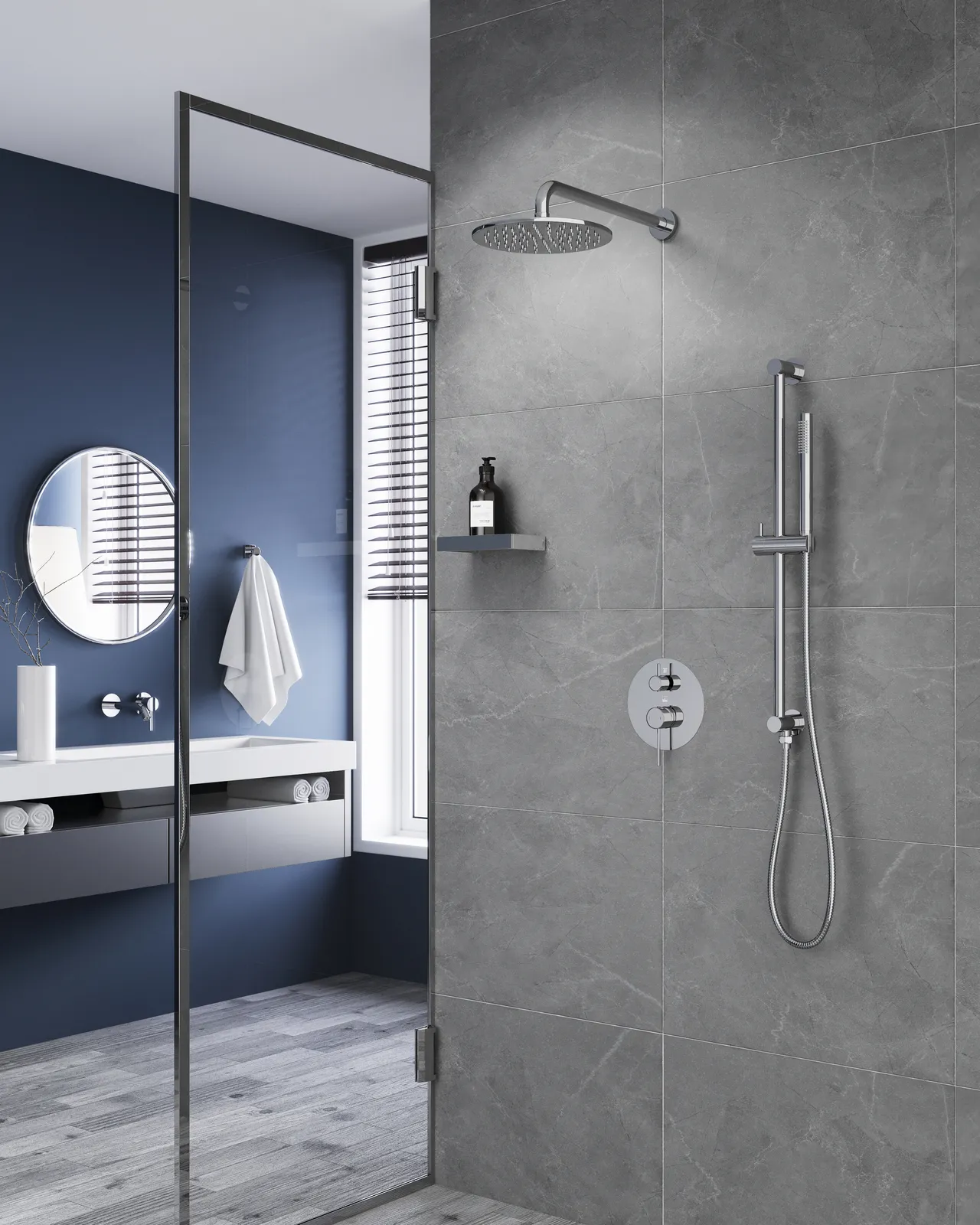 | Оснащение | смеситель / верхний душ / душевая лейка / душевой шланг / настенный держатель |