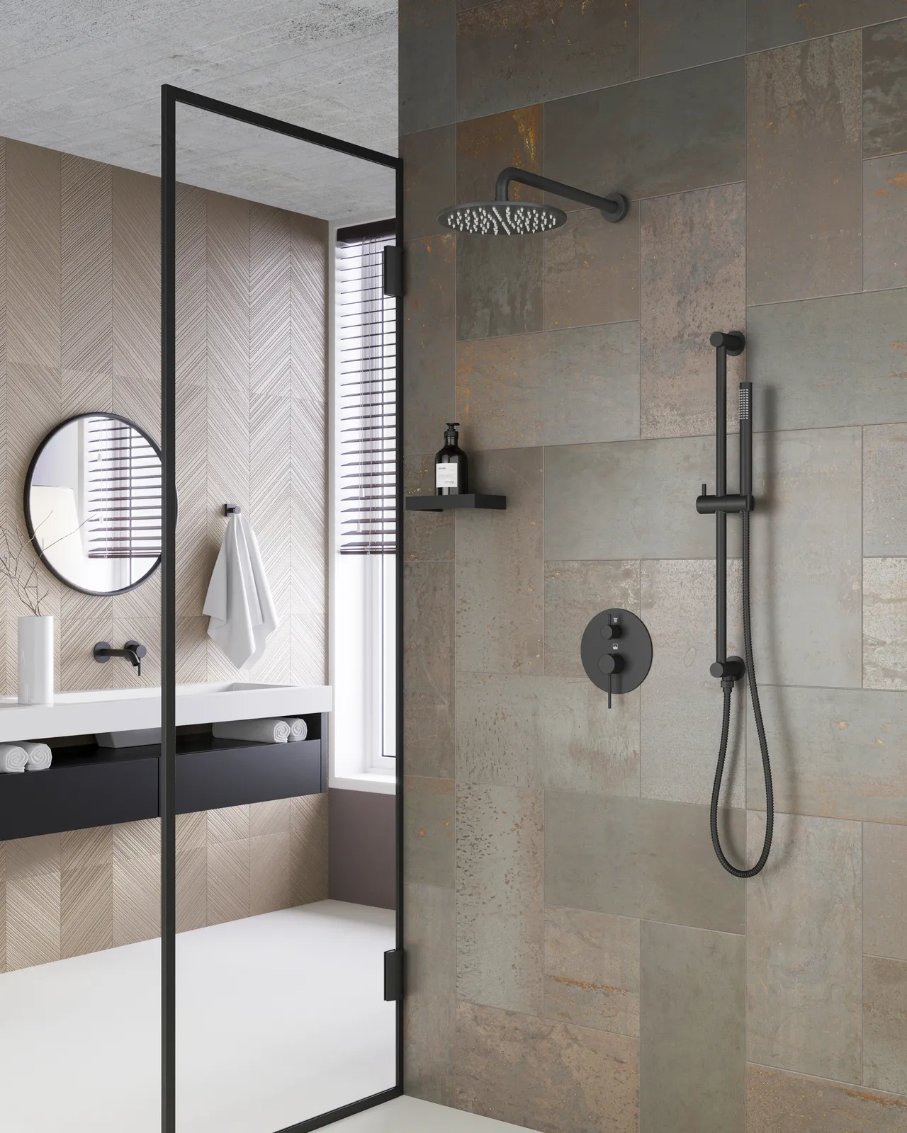| Оснащение | смеситель / верхний душ / душевая лейка / душевой шланг / настенный держатель |