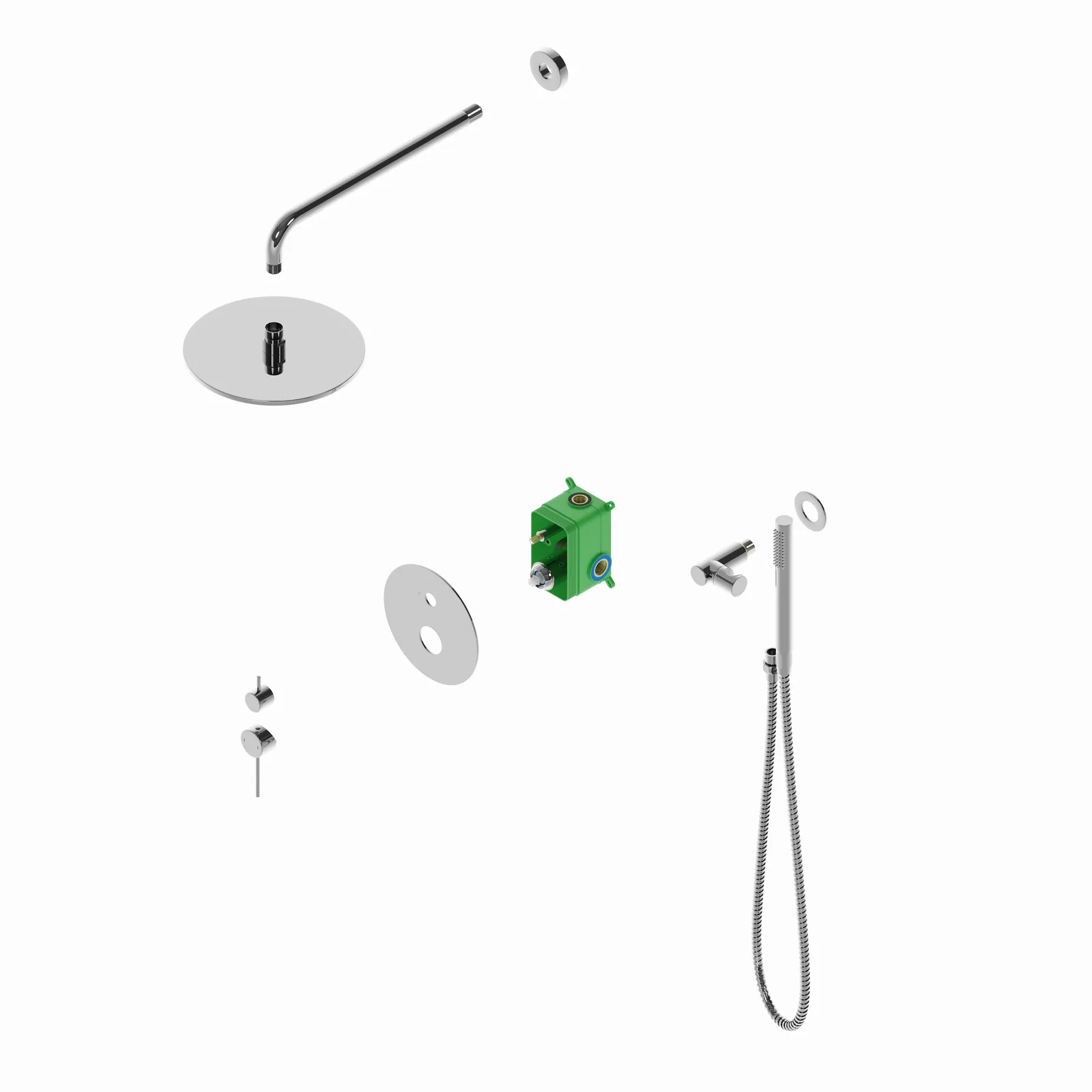 | Оснащение | смеситель / верхний душ / душевая лейка / душевой шланг / настенный держатель |