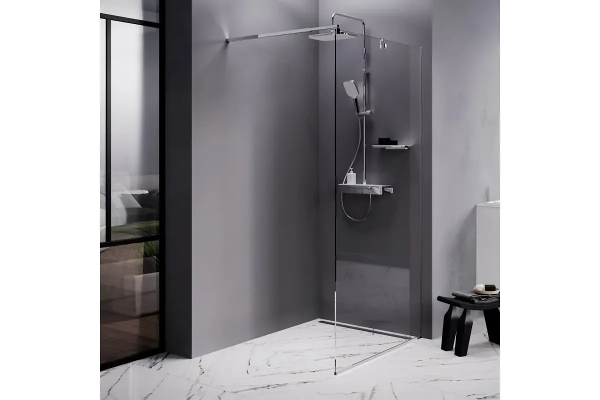 Минималистичная и современная душевая перегородка Walk In не только снизит визуальный шум в ванной но и благодаря оптимальным размерам впишется в любую ванную комнату.