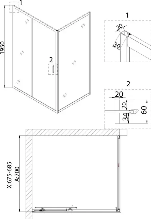 Душевая перегородка Niagara Nova 70x195 NG-A70B профиль черный стекло прозрачное