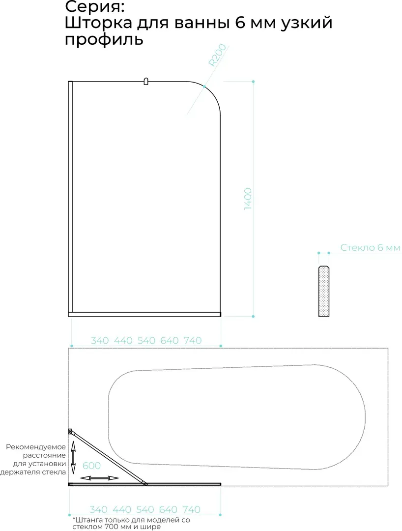 | Оснащение | закаленное стекло, цвет графит матовый, толщина 6 мм 1400х340 мм - 1 шт. / профиль п-образный, цвет хром матовый - 2 шт. / комплект крепежа - 1 шт. / герметик силиконовый санитарный, бесцветный - 1 шт. / инструкция по монтажу - 1 шт. |