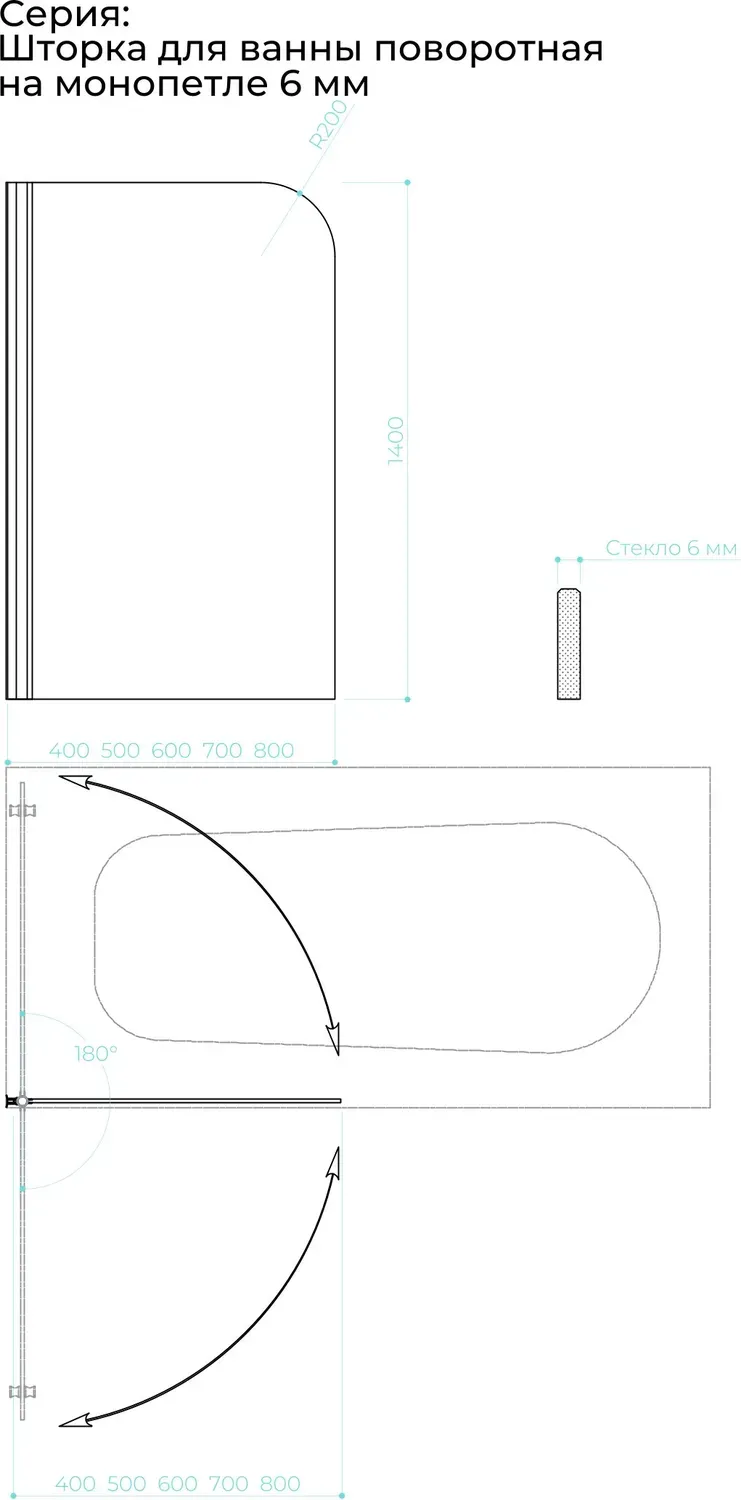 | Оснащение | закаленное стекло, цвет сатин, толщина 6 мм 1400х440 мм - 1 шт. / монопетля, цвет черный - 1 шт. / комплект крепежа - 1 шт. / уплотнитель – 1 шт. / инструкция по монтажу - 1 шт. |