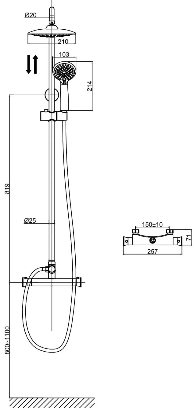 Дополнительные функции | регулировка по высоте душевой штанги |