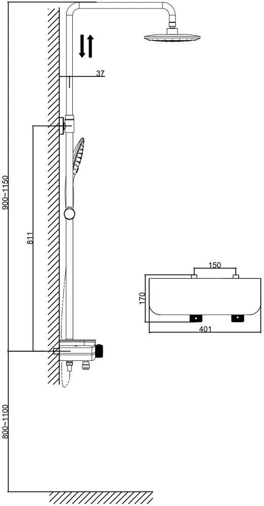 Дополнительные функции | регулировка по высоте душевой штанги |