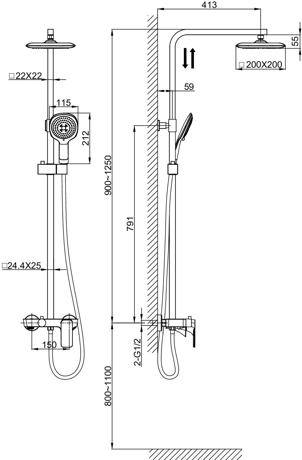| Дополнительные функции | регулировка по высоте душевой штанги |