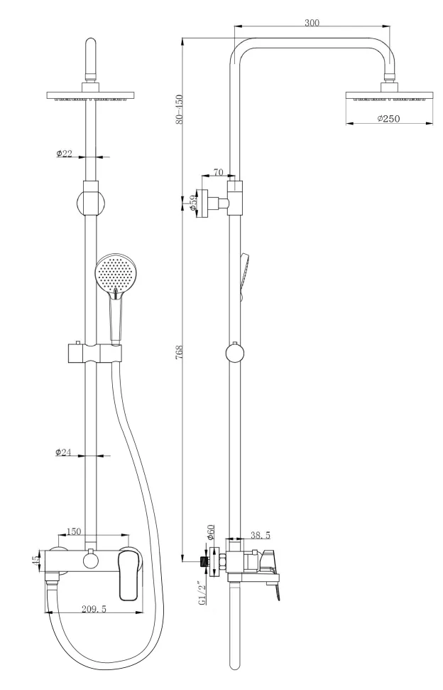 Душевая стойка PAINI Viva Style P4YO687D250F3D110