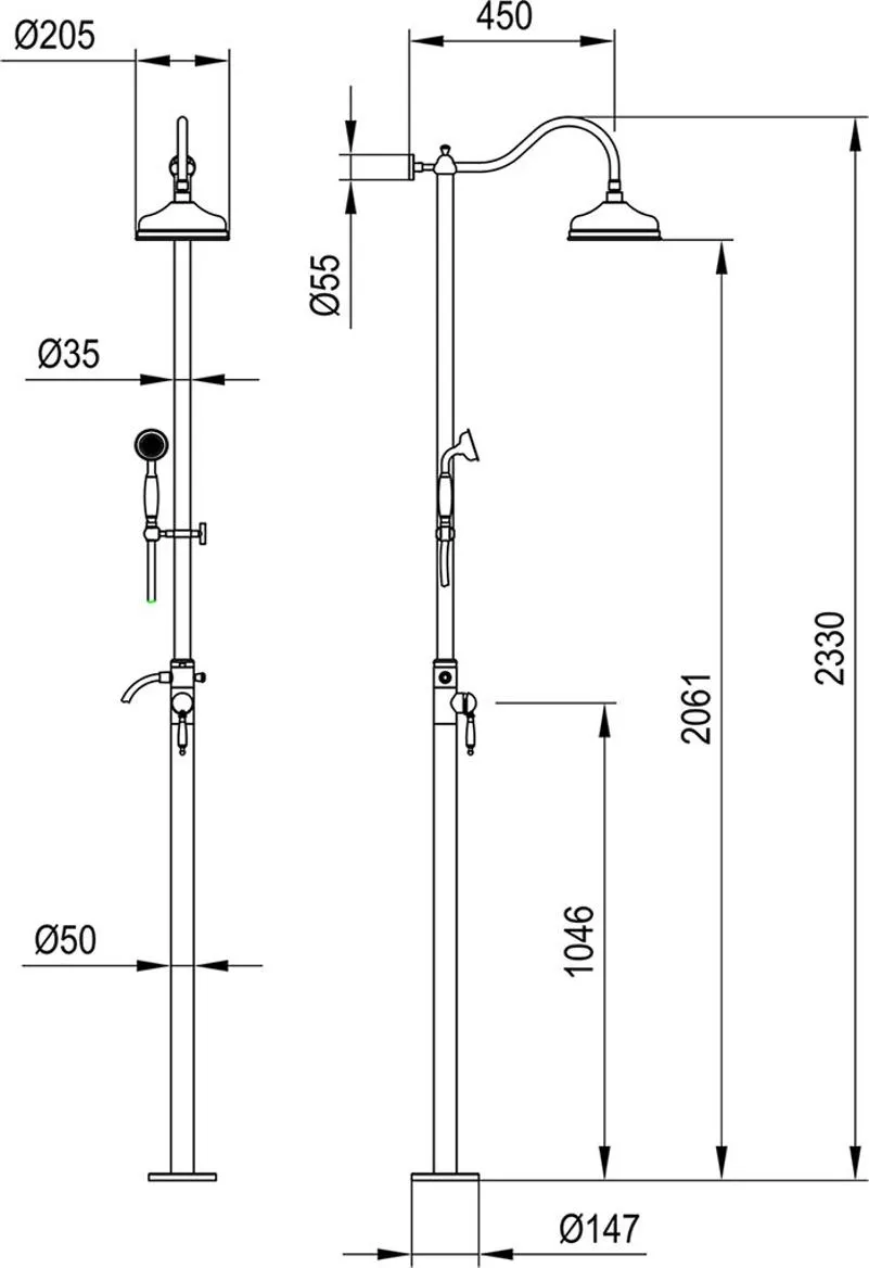 | Оснащение | смеситель / верхний душ / душевая штанга / держатель для душевой лейки / душевая лейка / душевой шланг |