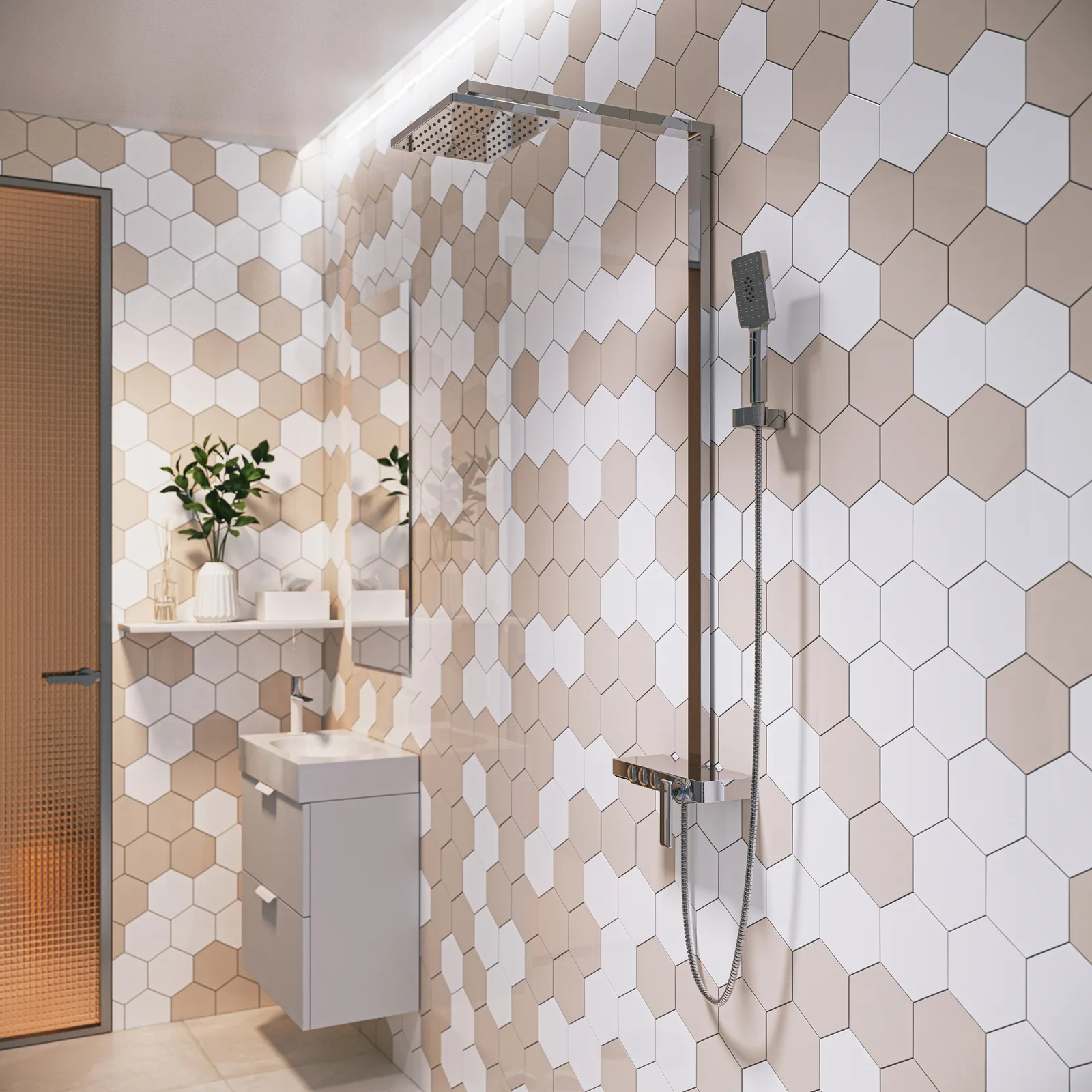 | Оснащение | смеситель / верхний душ / душевая штанга / держатель для душевой лейки / душевая лейка / душевой шланг |
