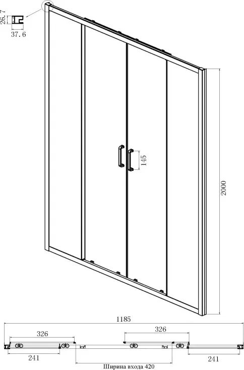 Душевой уголок Ambassador Forsa 120x200x110 17021107AX-110AX профиль хром стекло прозрачное
