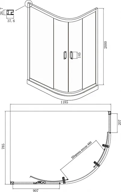 Душевой уголок Ambassador Royal 120x200x80 18015301 профиль золото стекло тонированное с узором