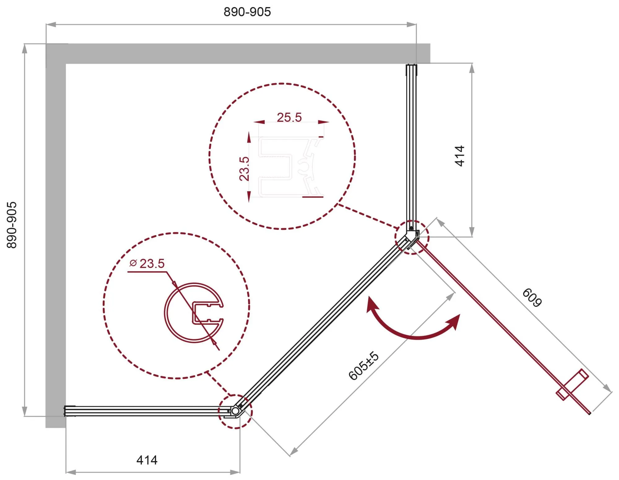 Душевой уголок BelBagno UNO-195 UNO-195-P-1-90-CH-CR