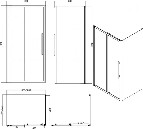 Душевой уголок Esbano Flex 100x195x80 ESOGF108PSB профиль черный стекло прозрачное