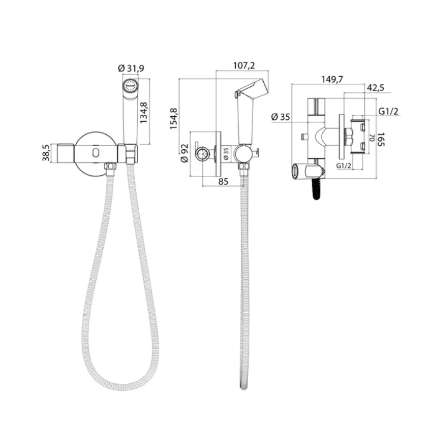 Оснащение | смеситель / скрытая монтажная часть / держатель для душа / лейка гигиенического душа / душевой шланг |