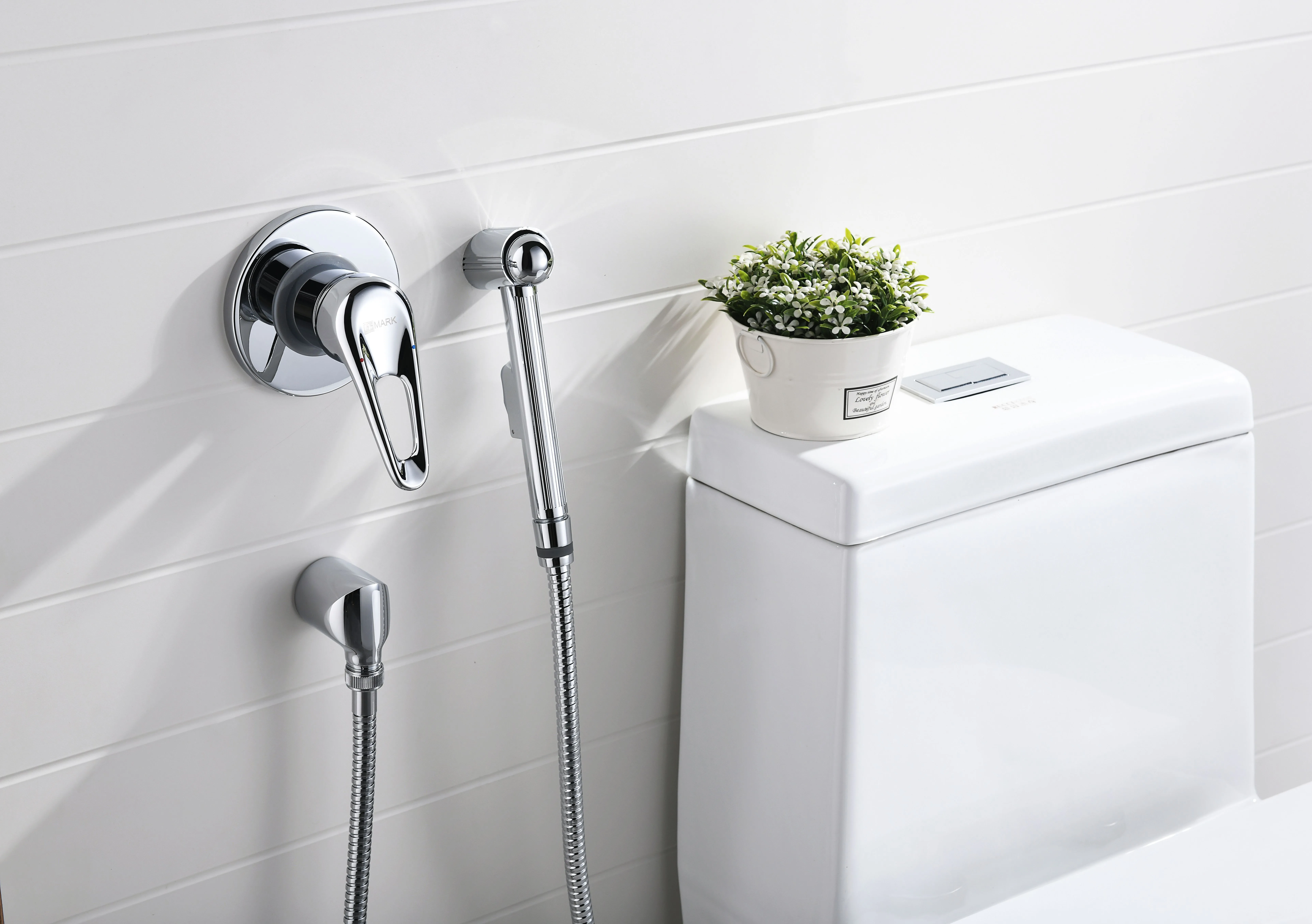 - Аксессуары в комплекте: лейка для биде с нажимным механизмом, шланг 1,5 м, настенное крепление для лейки
