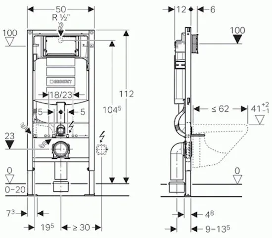Двойной смыв в инсталляции для унитаза Geberit Duofix 111.362.00.5
