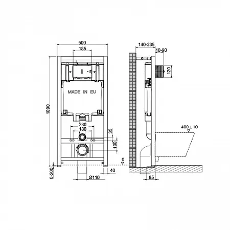 Система инсталляции Oli Eco 886914SLO3 с черной матовой кнопкой смыва