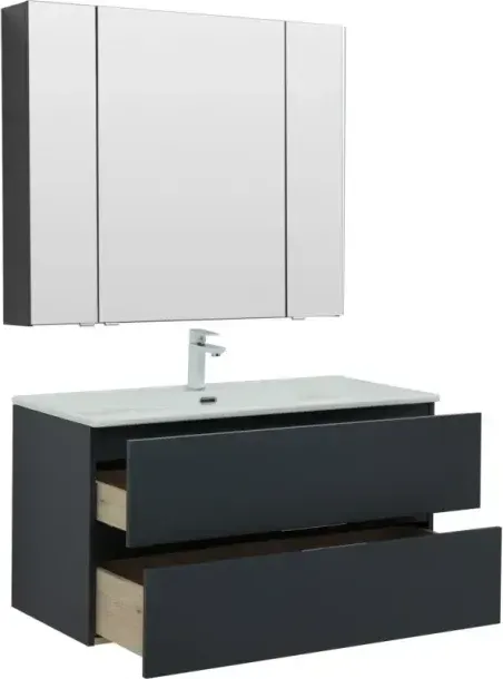 Мебель для ванной Aquanet Алвита New 100 подвесная с 2-мя ящиками антрацит