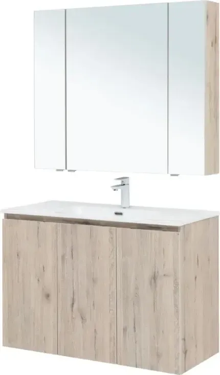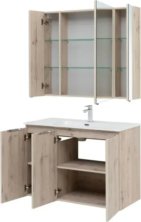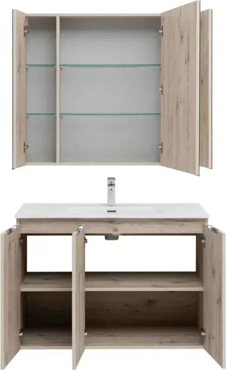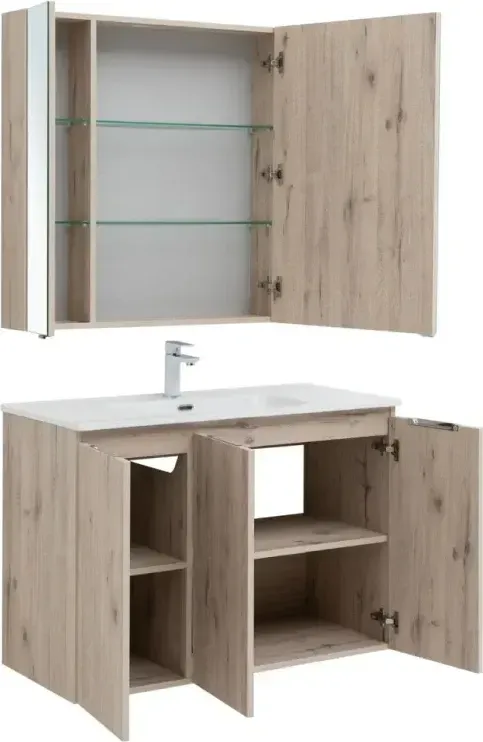Мебель для ванной Aquanet Алвита New 100 подвесная с 3-мя дверцами дуб веллингтон белый