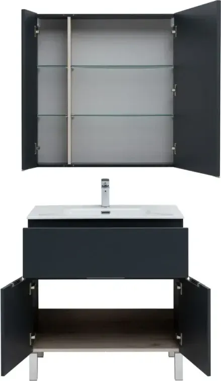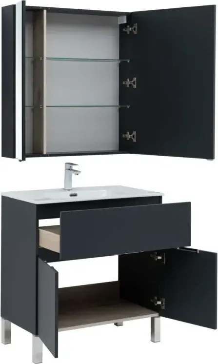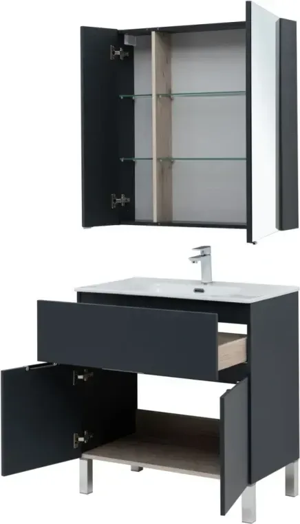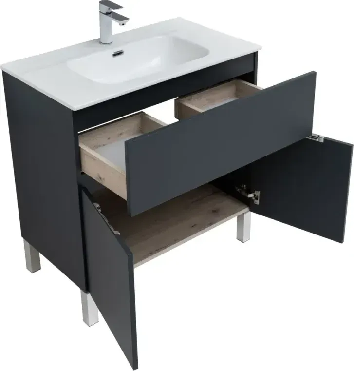 Мебель для ванной Aquanet Алвита New 80 напольная с ящиком и 2-мя дверцами антрацит