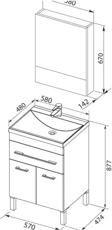 Мебель для ванной Aquanet Верона 55 напольная с ящиком и 2-мя дверцами с раковиной Нота