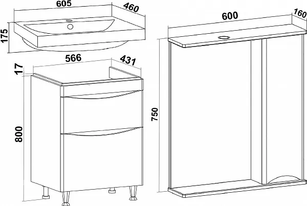 Расположение полок/шкафчиков | Полки снизу, Шкафчик справа |