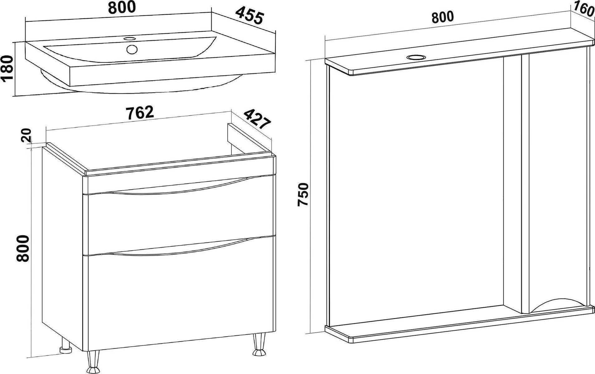 | Тип зеркала | Зеркало с полкой и шкафом |