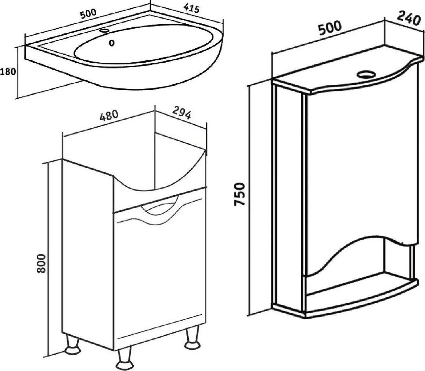 Мебель для ванной Runo Фортуна 50 напольная