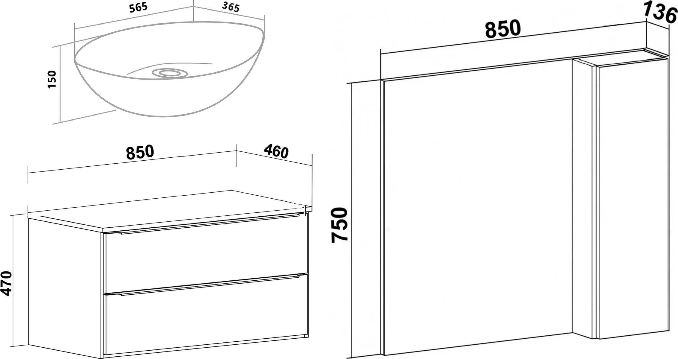 Мебель для ванной Runo Мальта 85 подвесная